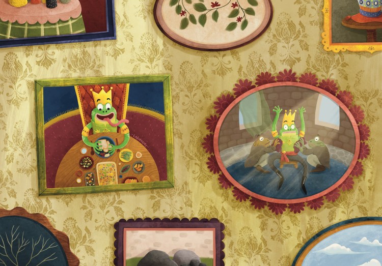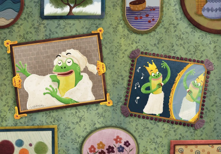 From the very first read, I could already see the frog prince in my head. I wanted him to look smug, cocky, overconfident, slightly annoying, and completely full of himself. I wanted him to make the children laugh immediately even if they couldn’t even read the text yet. A character whose face and gestures alone could make people laugh.
