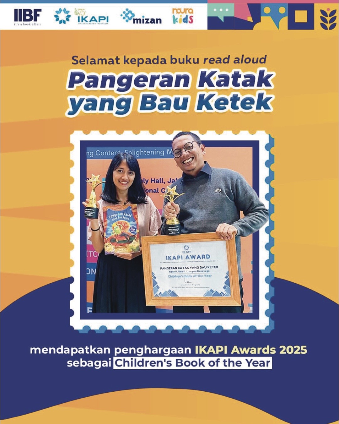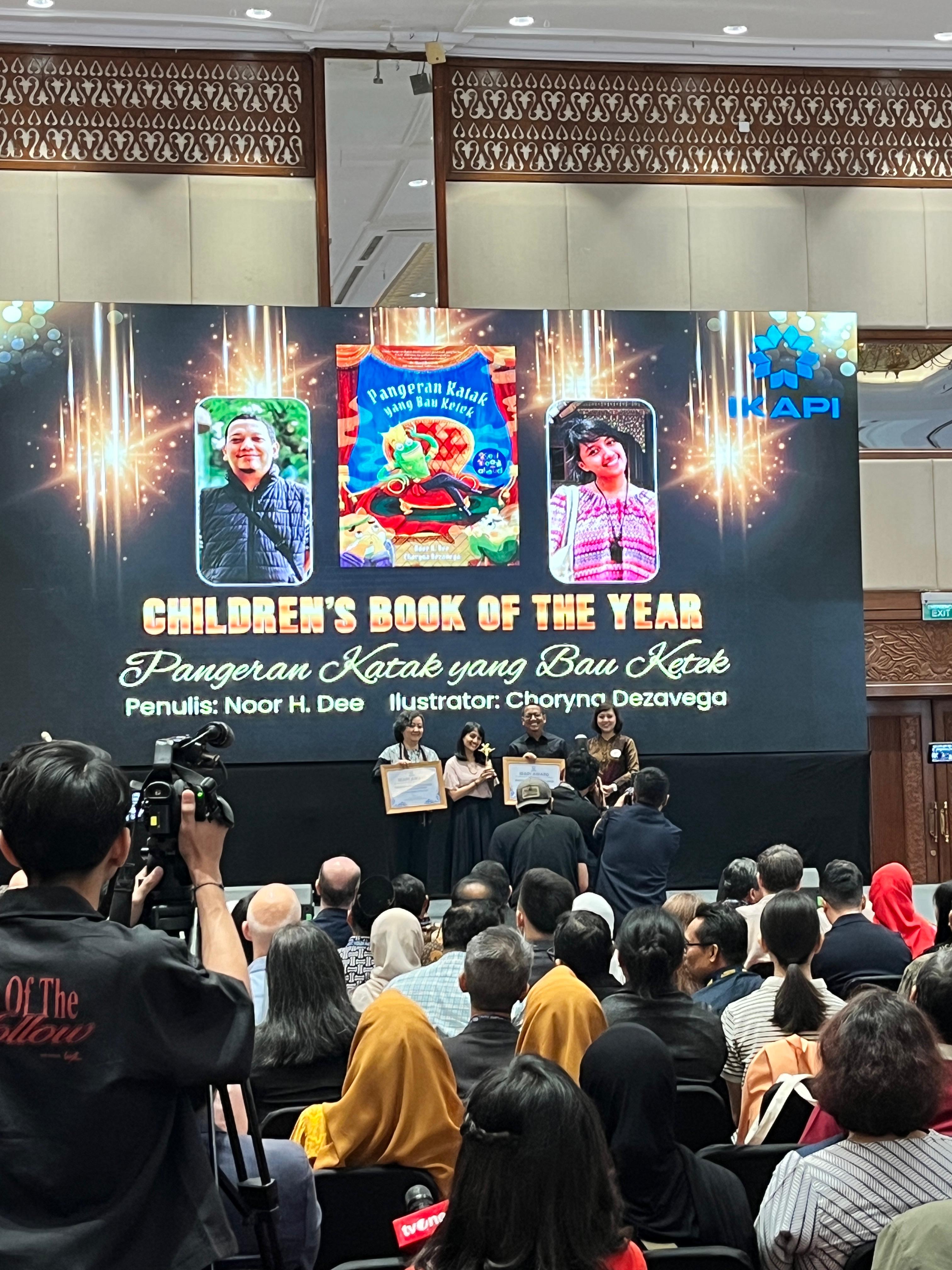 In September 2025, Pangeran Katak yang Bau Ketek received the IKAPI Award from the Indonesian Publishers Association (IKAPI) as Children’s Book of the Year 2025, an achievement i’m incredibly proud to be part of. It was announced at the opening ceremony of the Indonesia International Book Fair 2025 in Jakarta. To be the successor to the previous winners of this prestigious award (Kejutan Kungkang in 2023 and Bintang dan Gerhana in 2024) was something i wouldn’t have even dared to imagine.