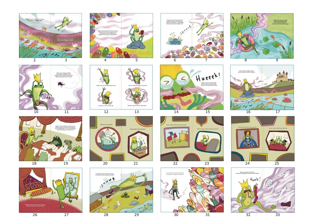 One of the most memorable book i’ve worked on is a book titled Pangeran Katak yang Bau Ketek (The Frog Prince with Stinky Armpits). When i got the manuscript, i was mindblown. The book was written with rhymes. The story was unusual (at least in my country), and i loooove unusual things!